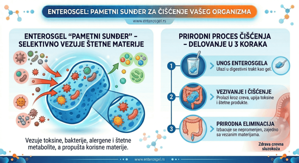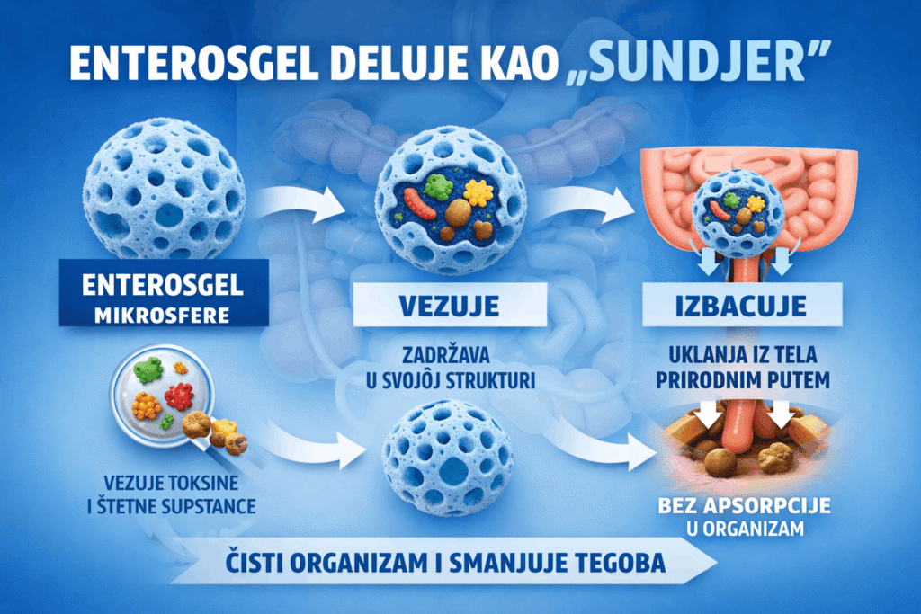 Kada se ne osećamo dobro zbog stomačnih problema, trovanja ili alergija, želimo rešenje koje je efikasno, brzo i, pre svega, bezbedno. Enterosgel je inovativni medicinski preparat (enterosorbent) koji deluje upravo tamo gde problem nastaje – u vašim crevima.